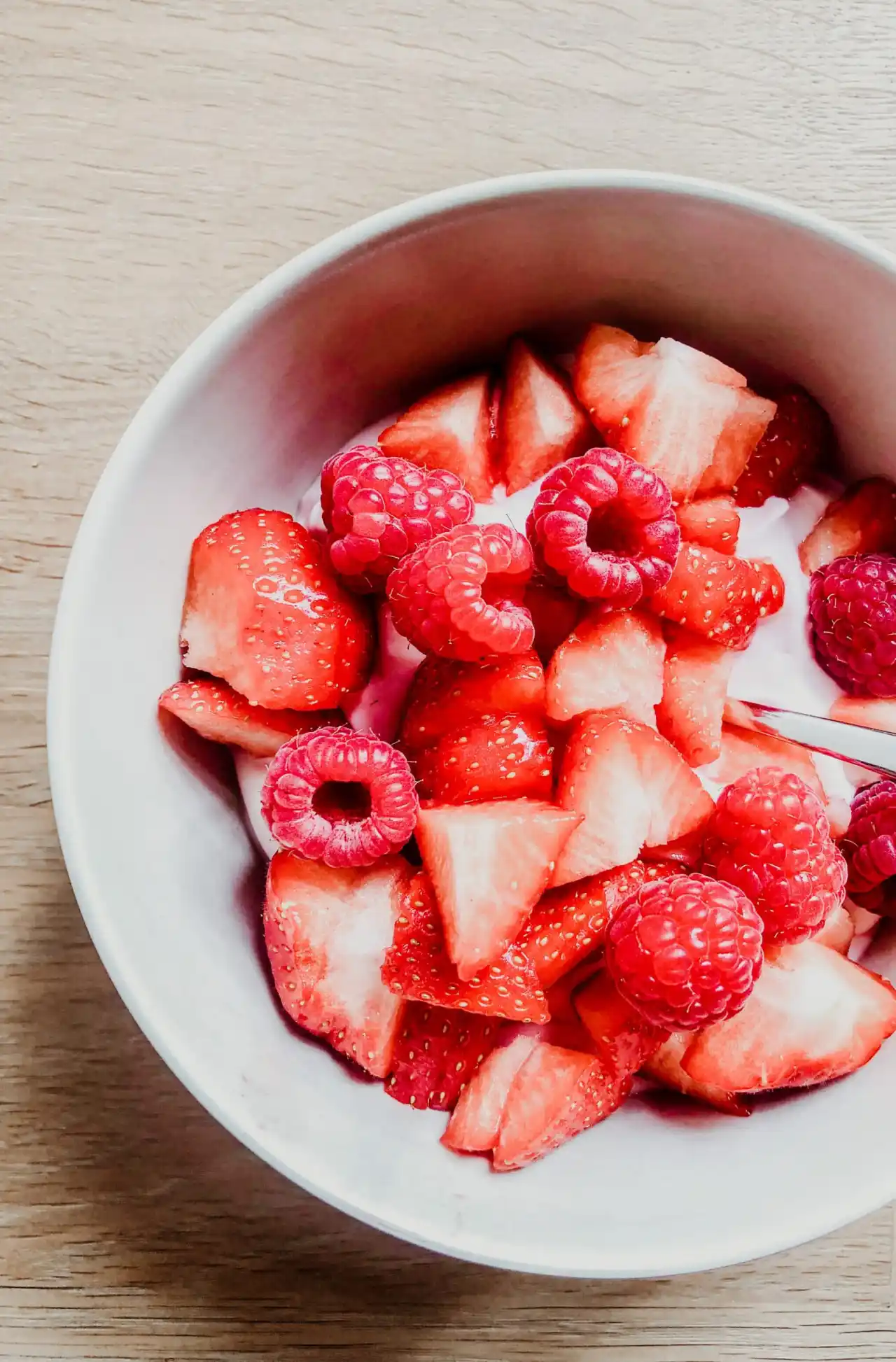 Ingredients: full fat yogurt, blueberries, raspberries, strawberries