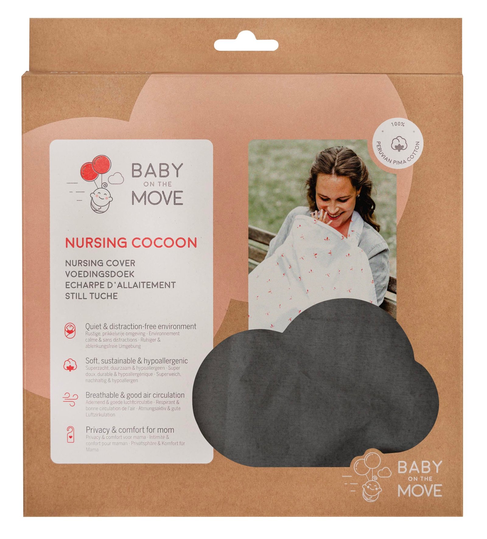Our breastfeeding cover comes with a convenient washing bag and a matching on-the-go bag so that you can easily take your Nursing Cocoon with you.