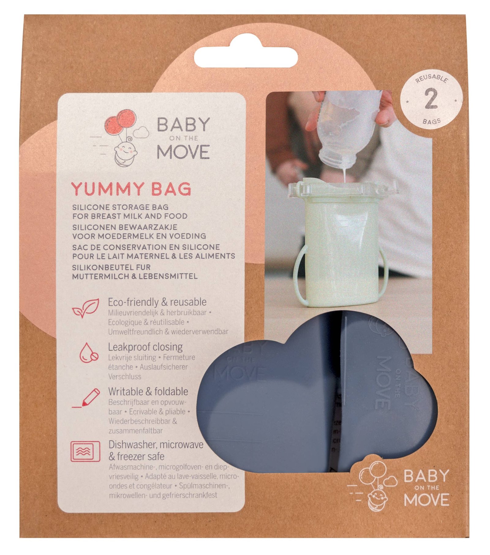 Our Yummy bag is designed as a food storage solution from birth to toddlerhood (and beyond)! Its size is ideal for care-free storage of your precious breast milk anywhere. As your baby grows, you can use it to take porridges or tasty nibbles wherever you go. When your toddler is ready for school, do not forget to pack their Yummy Bag! Their snacks will stay fresh and you will not have to worry about any leaks. Beyond that you can of course keep using the Yummy Bag for single servings of soup, snacks, and other meals. We are convinced that your Yummy Bag will eventually become an indispensable part of your kitchen storage system.