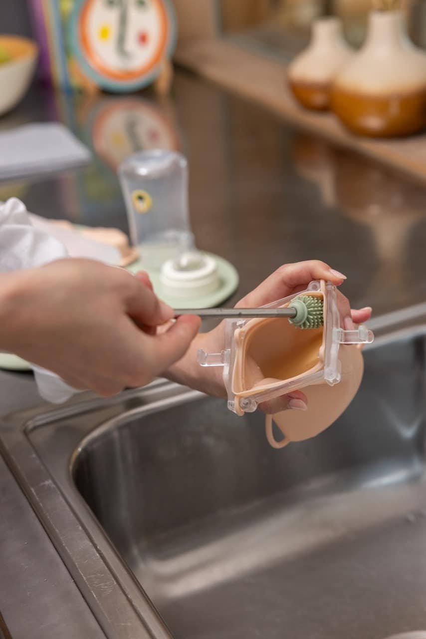 Our Yummy Brush is designed for precision cleaning of large components as well as those tricky small parts. This versatile brush is perfect for bottles, pump parts, teats and all your Yummy products. Make cleaning quick and effortless, both at home and while on the go. Once you’re done, you can simply hang it to dry.