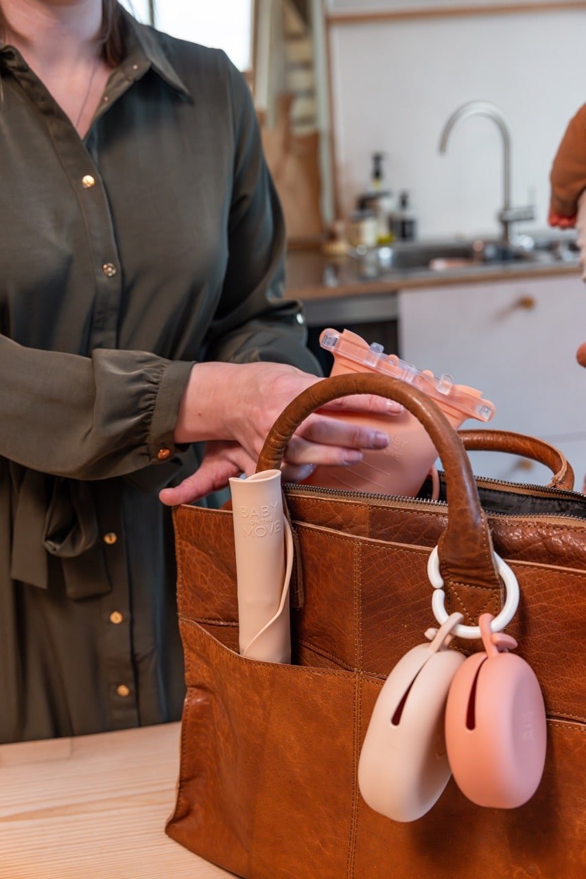 The Yummy Mat provides a hygienic surface for drying and doubles as a placemat for little ones on the go. The raised edges keep spilled water on the mat. Roll the mat up with the brush inside for easy storage and transport, or use the handy strap to hang it up to dry. It fits effortlessly into any diaper bag, kitchen drawer, or suitcase, so you’re always prepared, no matter the situation. It’s made of dust-repellent silicone, which means that no annoying hairs or other dirt sticks to the mat and keeps it clean.